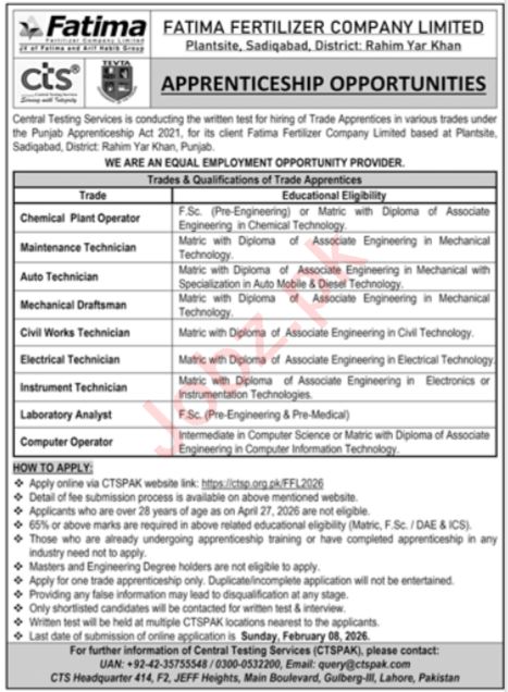 If you are searching for FFCL jobs 2026, fertilizer company technical jobs in Lahore, industrial plant operator vacancies, or apprenticeship opportunities in the private sector, this announcement offers multiple career entry and growth pathways.