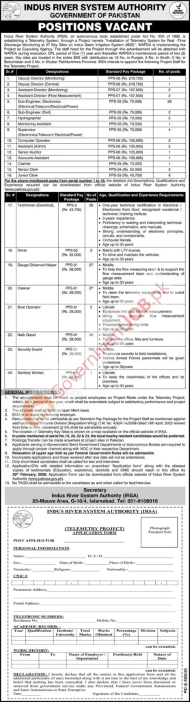 Note: This job posting is based on the official advertisement issued by the Indus River System Authority (IRSA). The final authority for selection, interpretation, and appointment rests with IRSA and WAPDA. IRSA reserves the right to cancel, modify, or re-advertise any post without prior notice.