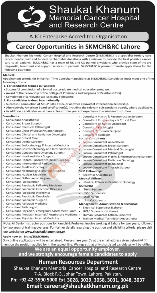 📧 Email: careers@shaukatkhanum.org.pk